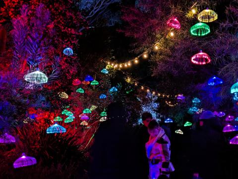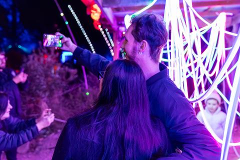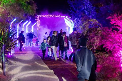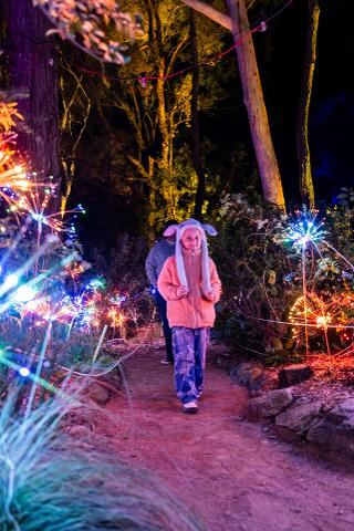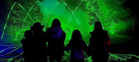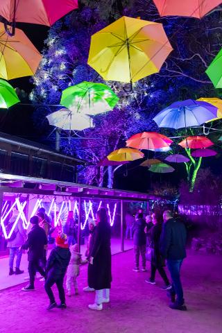 Follow glowing pathways, pass through illuminated trees and explore mystical-themed areas where light, sound and nature combine.